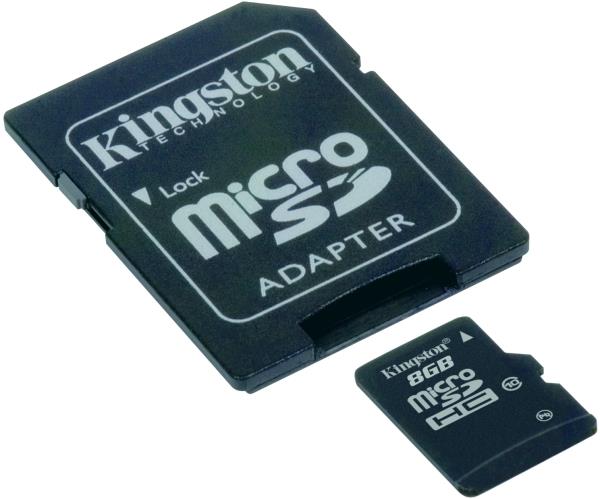 KINGSTON SDC10/8GB 8GB CLASS10 MICRO SDHC + 1 ADAPTOR