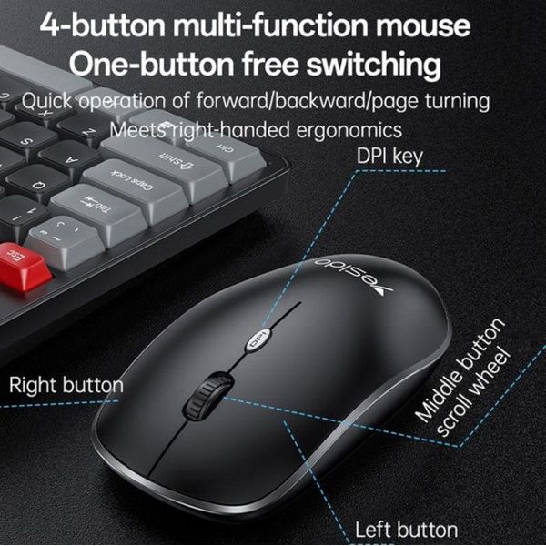YESIDO KB43 WIRELESS KEYBOARD AND MOUSE COMBO BLACK