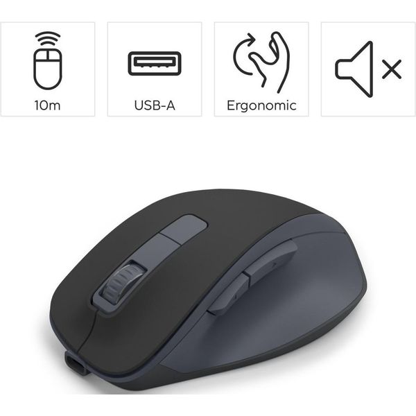 HAMA 173081 WM-500 WIRELESS MOUSE, ERGONOM., 6 BUTTONS, W/O CLICK NOISE, BATTERY, BLK