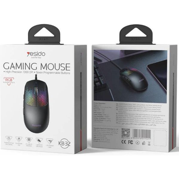 YESIDO KB32 WIRED GAMING MOUSE RGB 7200DPI BLACK