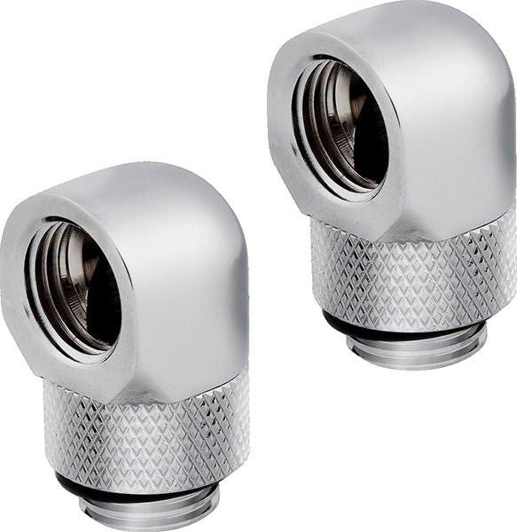 CORSAIR HYDRO X FITTING ADAPTER XF 90° ANGLED ROTARY CHROME 2-PACK