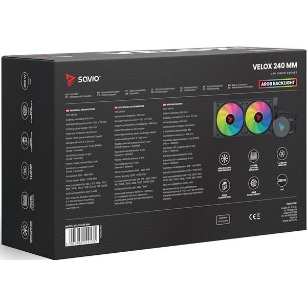 SAVIO VELOX 240MM ARGB CPU WATER COOLING FAN