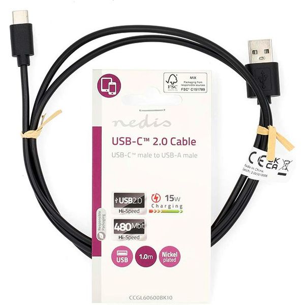 NEDIS CCGL60600BK10 USB 2.0 CABLE USB-A MALE - USB-C MALE 15W 1.00M BLACK