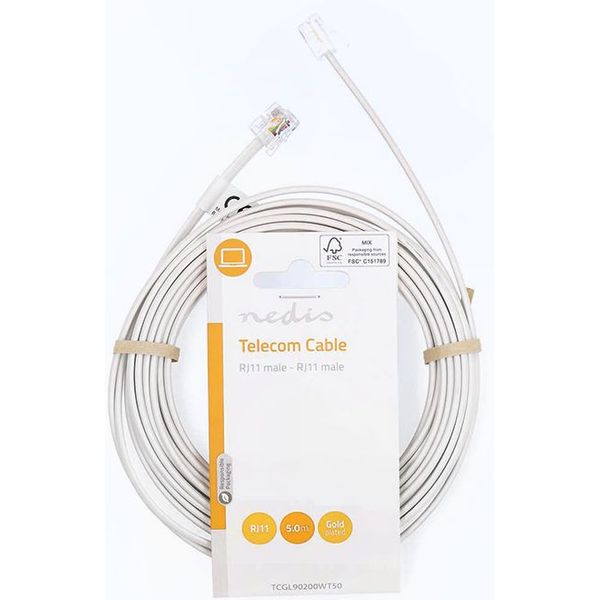 NEDIS TCGL90200WT50 TELECOM CABLE RJ11 MALE - RJ11 MALE 5.00M WHITE