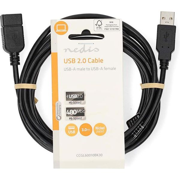 NEDIS CCGL60010BK30 USB 2.0 CABLE USB-A MALE - USB-A FEMALE 3.00M BLACK