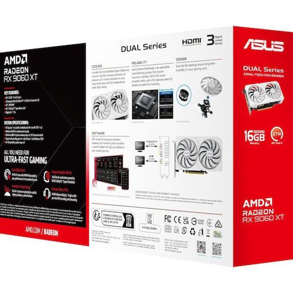 VGA ASUS AMD RADEON RX 9060 XT DUAL WHITE EDITION 16GB GDDR6 RETAIL