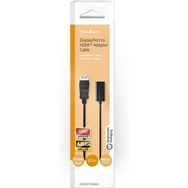 NEDIS CCGB37150BK02 DISPLAYPORT CABLE DISPLAYPORT MALE - HDMI OUTPUT 4K@30HZ 0.20M BLACK