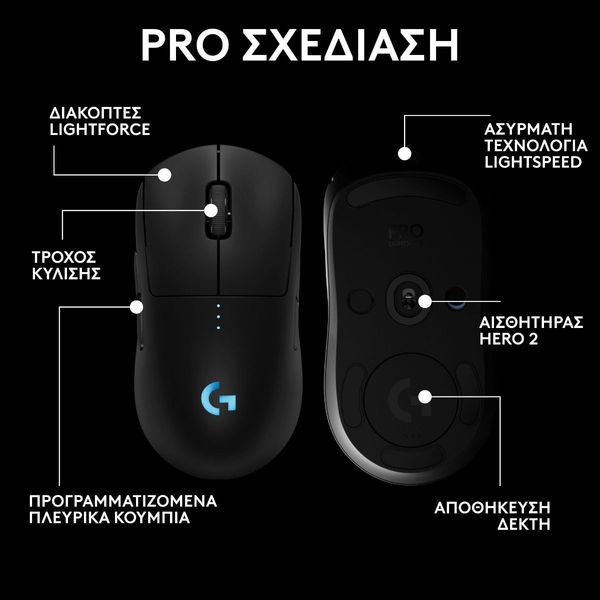 LOGITECH G PRO 2 LIGHTSPEED AMBIDEXTROUS WIRELESS GAMING MOUSE BLACK 910-007295