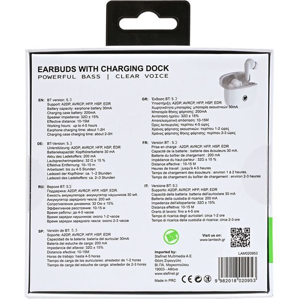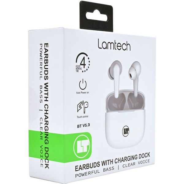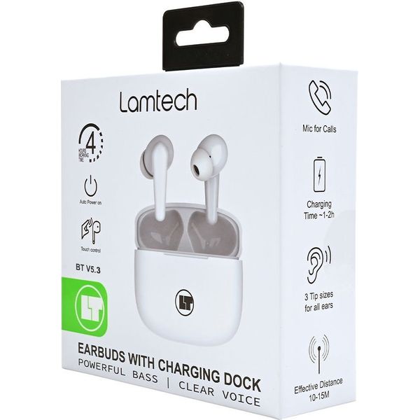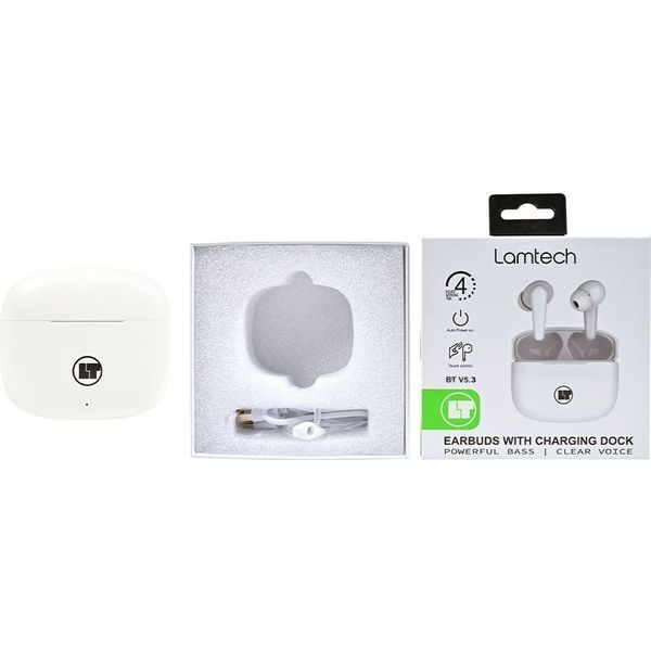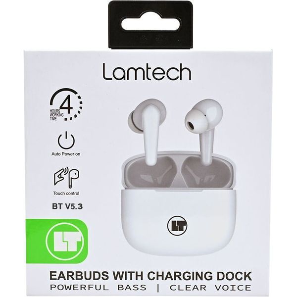 LAMTECH BLUETOOTH 5.3 TWS EARPHONES WITH CHARGING DOCK WHITE LAM020953