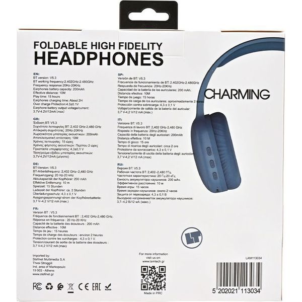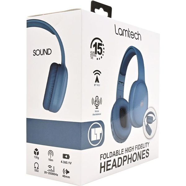 LAMTECH BT5.3 FOLDABLE HIGH FIDELITY HEADPHONES BLUE LAM113034