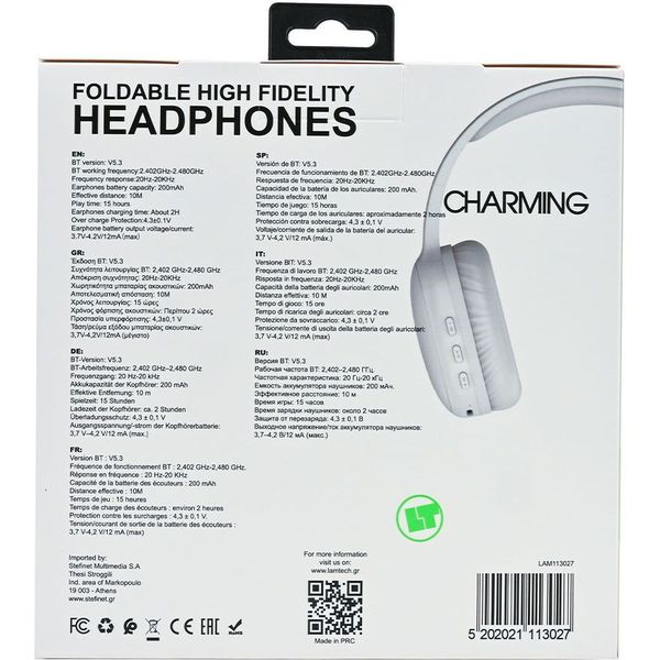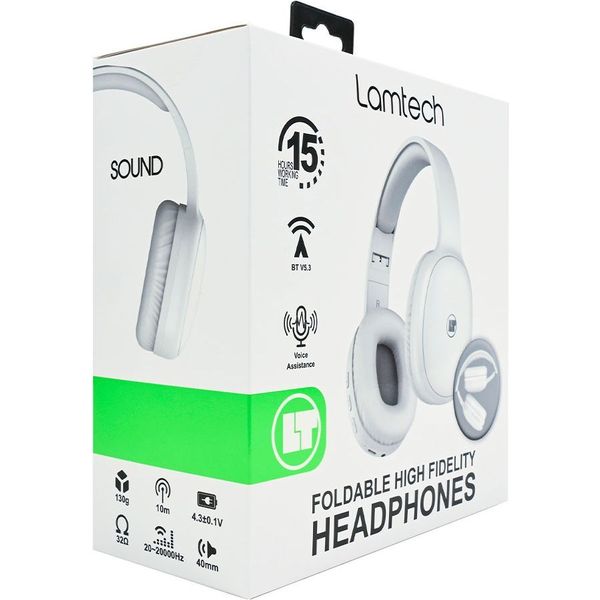LAMTECH BT5.3 FOLDABLE HIGH FIDELITY HEADPHONES WHITE LAM113027