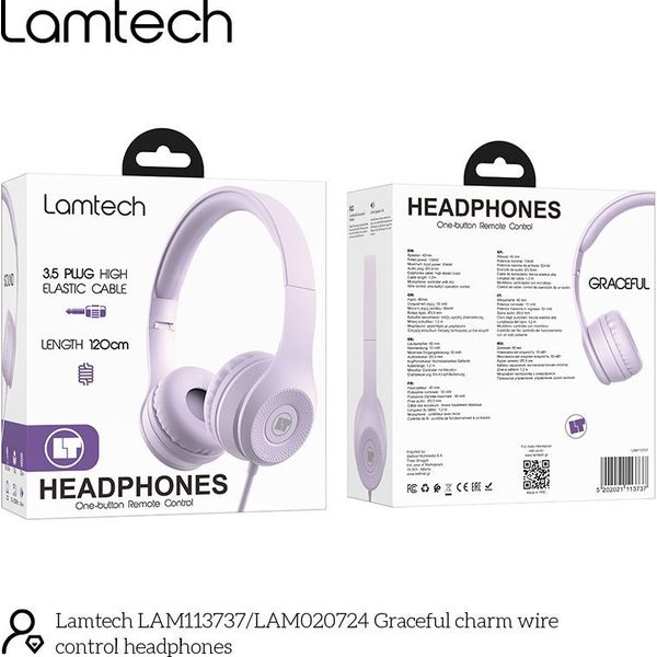 LAMTECH EXTRA BASS STEREO HEADPHONES WITH MIC PURPLE LAM113737