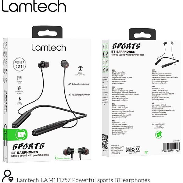 LAMTECH POWERFUL BLUETOOTH WIRELESS SPORTS EARPHONES BLACK LAM111757