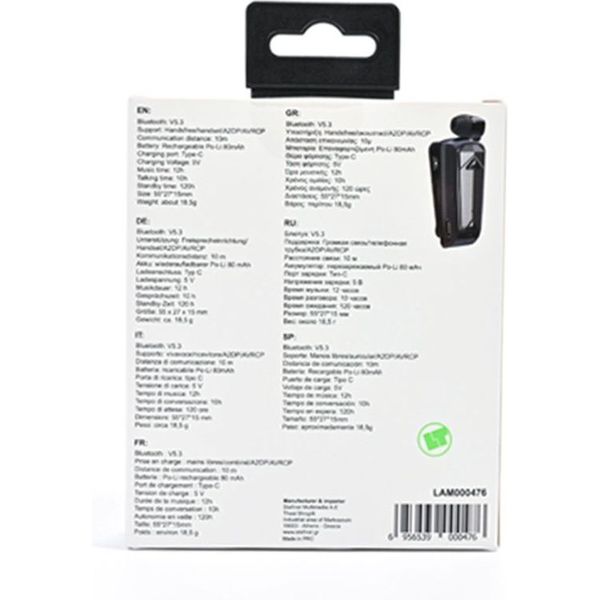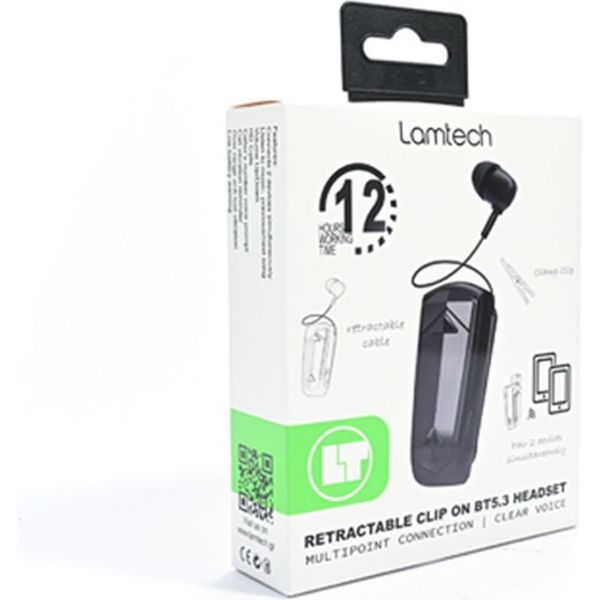 LAMTECH RETRACTABLE BT 5.3 CLIP ON HEADSET BLACK (HANGING CORD) LAM000476