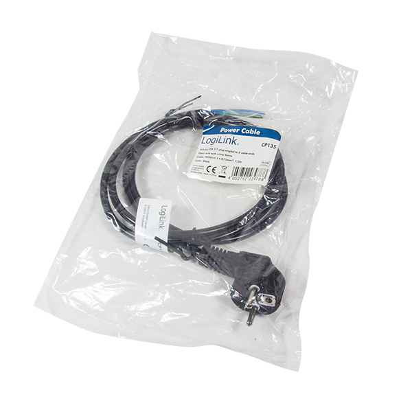 LOGILINK CP135 POWER CORD SCHUKO PLUG 90° (CEE 7/7) TO OPEN WIRE WITH CRIMP BARRE 1.5M BLACK