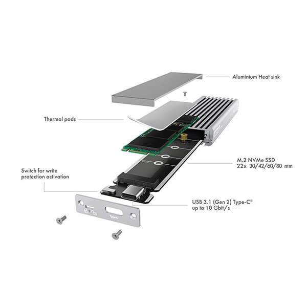 RAIDSONIC ICY BOX IB-1817MA-C31 ENCLOSURE FOR 1X NVME WITH USB 3.1 (GEN 2) TYPE-C & TYPE-A INTERFAC