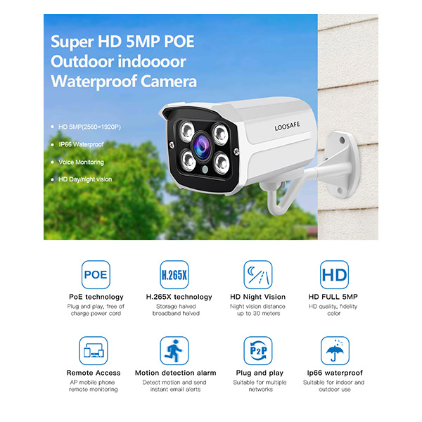 LOOSAFE POE NVR KIT H.265 + 8 CAMERAS 5MP