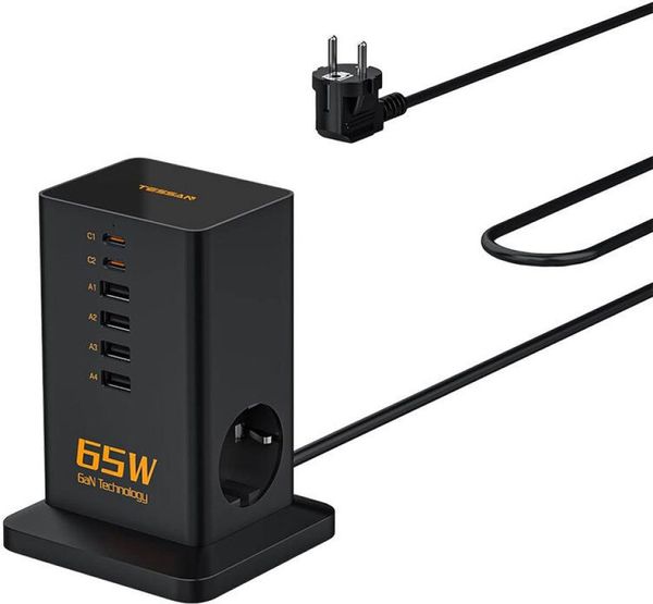 TESSAN 8 IN 1 GAN POWER STRIP 2XSCHUKO 4XUSB 2XTYPE-C 65W WITH CABLE 2M BLACK TS-FS02DE00