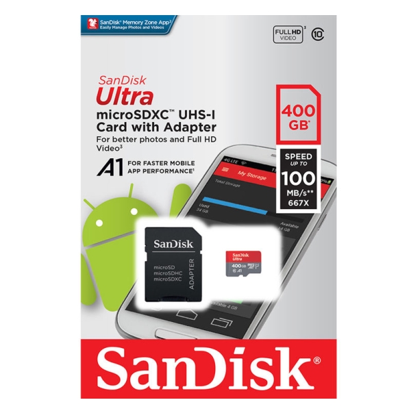 SANDISK SDSQUAR-400G-GN6MA 400GB ULTRA A1 MICRO SDXC U1 CLASS 10 WITH ADAPTER