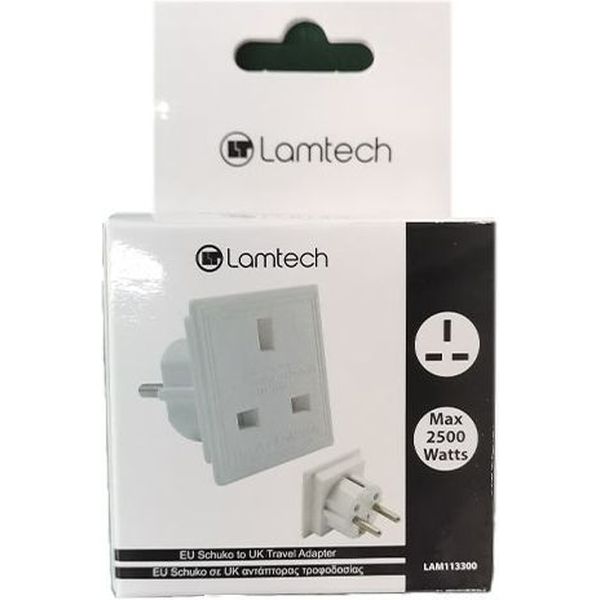 LAMTECH EU SCHUKO TO UK 16A TRAVEL ADAPTER LAM113300
