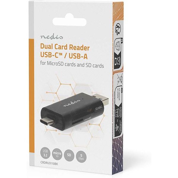 NEDIS CRDRU3110BK CARD READER USB 3.2 GEN 1 MICROSD/MICROSDHC/MICROSDXC/ SD/ SDHC/SDXCP