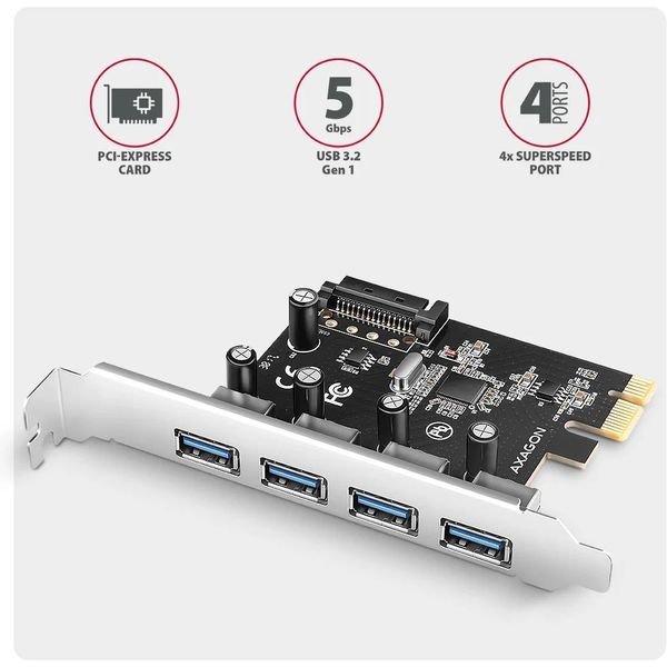 AXAGON PCEU-430RS PCIE ADAPTER 4X USB3.0 UASP RENESAS 15-PIN SATA POWER SUPPLY