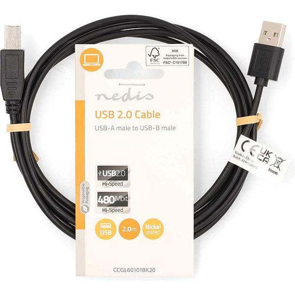 NEDIS CCGL60101BK20 USB 2.0 CABLE USB-A MALE - USB-B MALE 2.00M BLACK