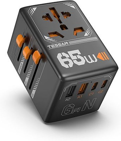 TESSAN GAN UNIVERSAL TRAVEL ADAPTER 2XUSB, 2XTYPE-C MAX 65W TS-WTA03