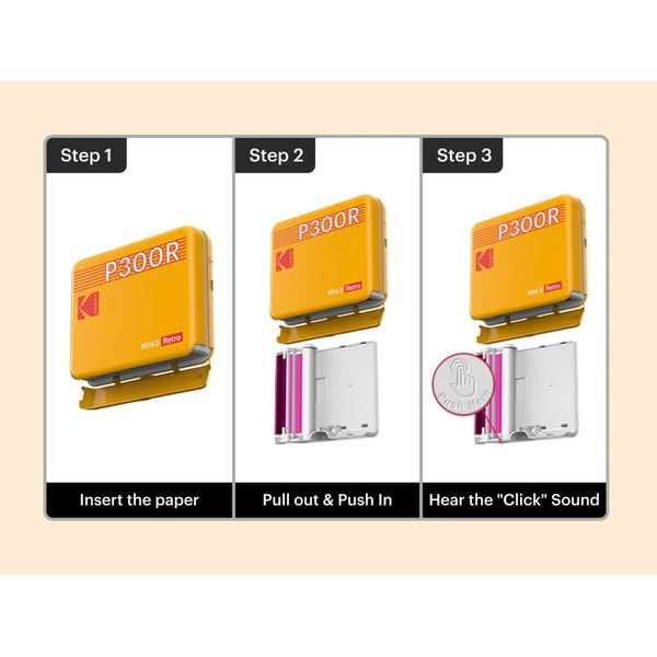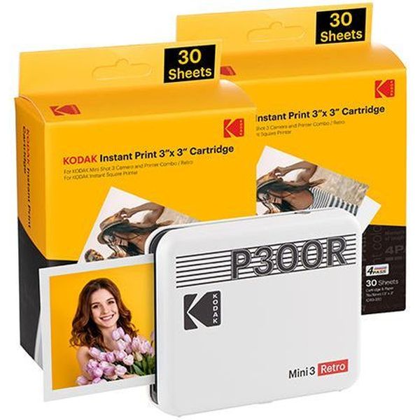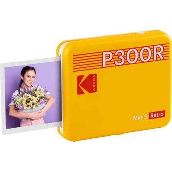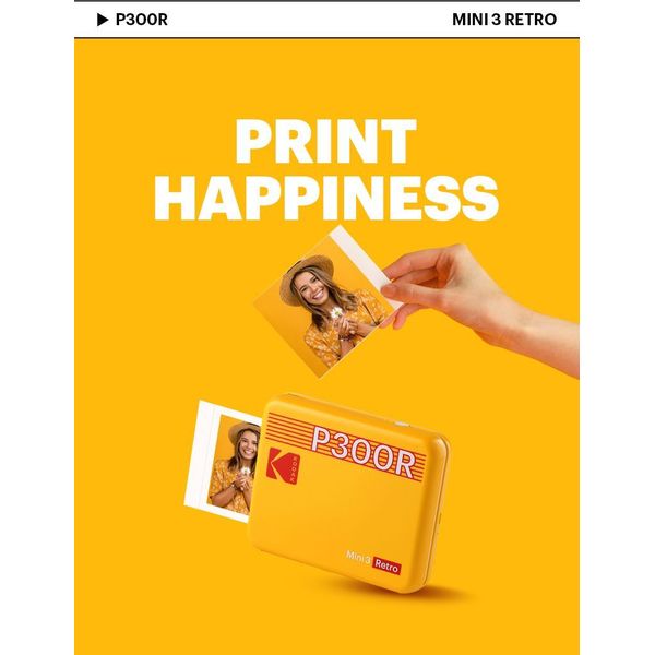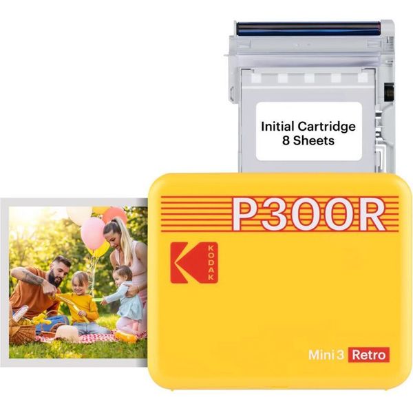 KODAK MINI 3 RETRO 4PASS SMARTPHONE PHOTO THERMAL PRINTER PORTABLE (7.6 X 7.6 CM) + 8 SHEETS, YELLO