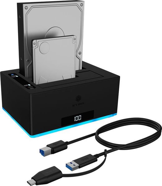 ICY BOX RGB USB 3.2 DOCKING AND CLONE STATION FOR 2X2.5'/3.5' HDD/SSD BLACK IB-127CL-U3