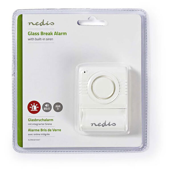 NEDIS ALRMGB10WT GLASS BREAK ALARM BUILT-IN SIREN ADJUSTABLE SENSITIVITY