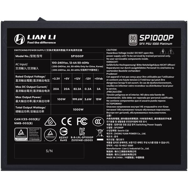 LIAN LI SP1000P BLACK -1000W 80+ PLATINUM PSU - 10 YEARS WARRANTY - 12V-2X6 - JAPANESE CAPACITORS