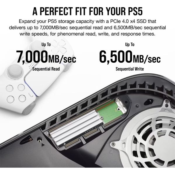 SSD CORSAIR MP600 ELITE 4TB NVME PCIE GEN4 X4 M.2 SSD WITH HEATSINK FOR PS5 CSSD-F4000GBMP600ECS