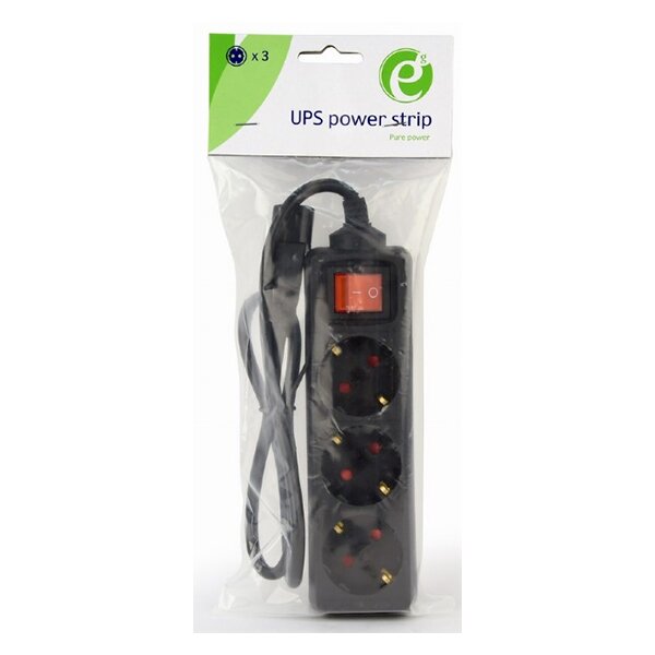 GEMBIRD EG-PSU3-01 UPS POWER STRIP 3 SCHUKO FUSED SWITCH, 16 A, C14 PLUG, 0.6M BLACK