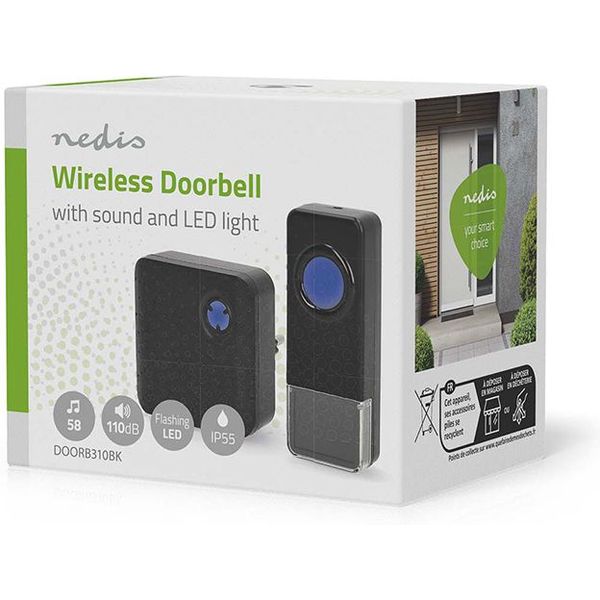 NEDIS DOORB310BK WIRELESS DOORBELL SET WITH 1 RECEIVER AND 58 MELODIES BLACK