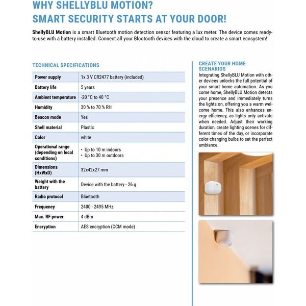 SHELLY BLU MOTION SENSOR ΑΣΠΡΟΣ