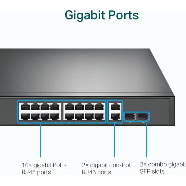 TP-LINK TL-SG1218MP 18-PORT GIGABIT RACKMOUNT SWITCH WITH 16 POE+