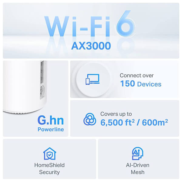 TP-LINK DECO PX50(3-PACK) AX5400 WHOLE-HOME POWERLINE MESH WI-FI 6 SYSTEM