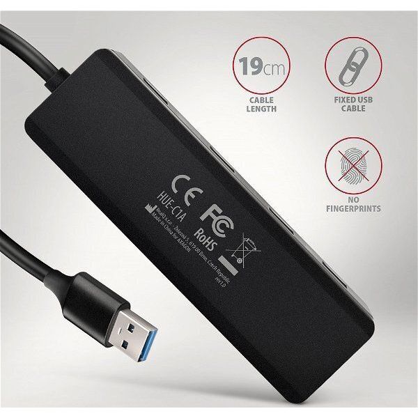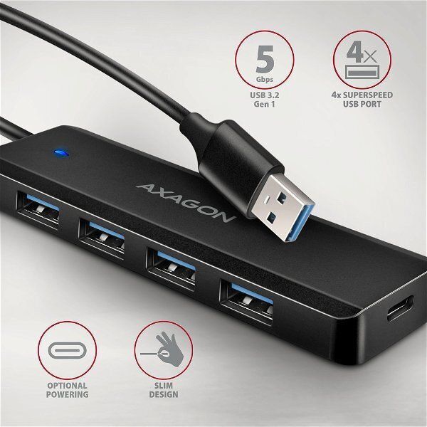 AXAGON HUE-C1A 4X USB3.2 GEN 1 TRAVEL HUB USB-C POWER IN W. 20CM TYPE-A CABLE