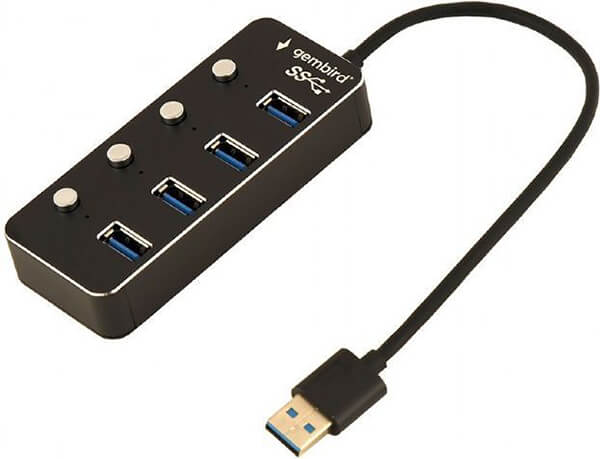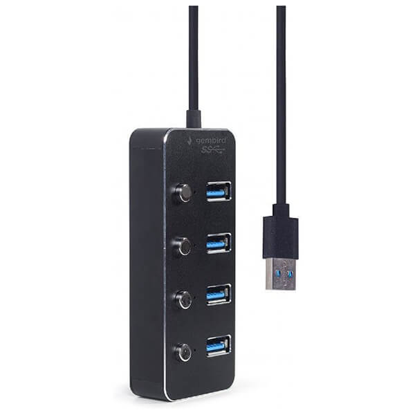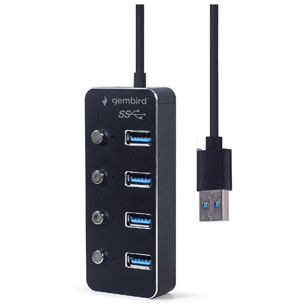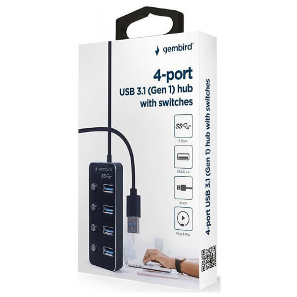 GEMBIRD USB 3.1 POWERED 4-PORT HUB WITH SWITCHES BLACK