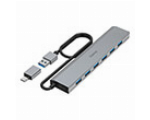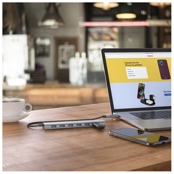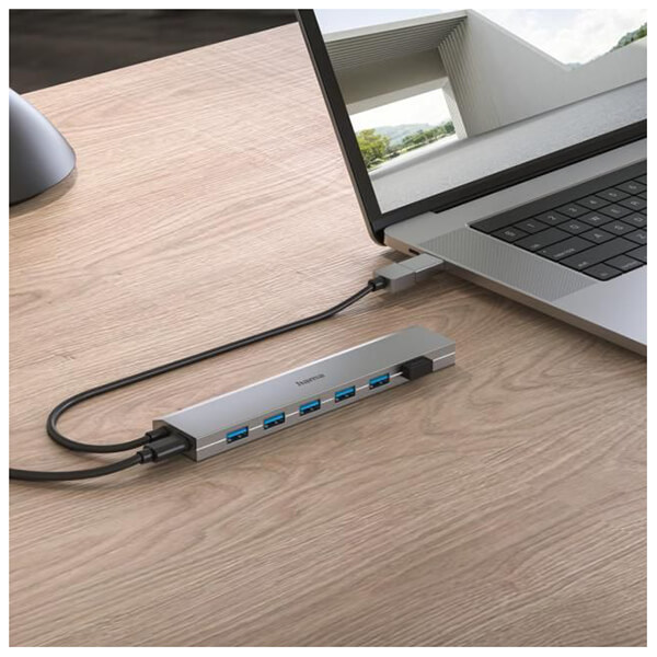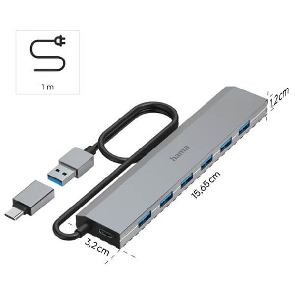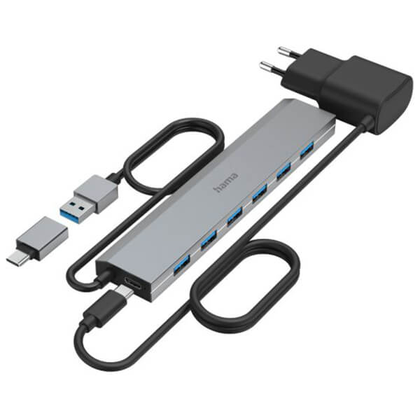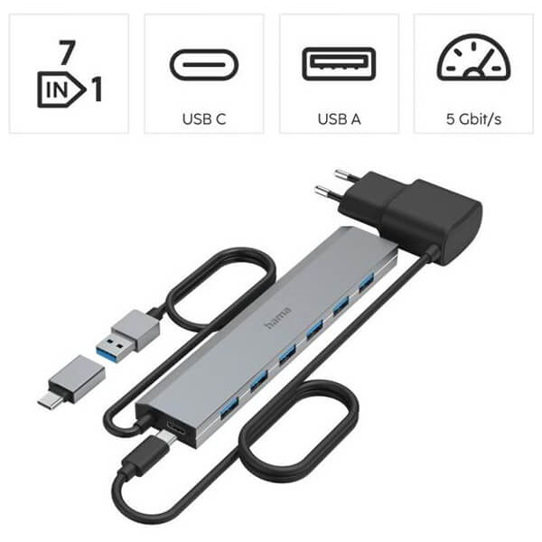 HAMA 200137 USB HUB, 7 PORTS, USB 3.2 GEN 1, 5 GBIT/S, INCL. USB-C ADAPTER AND PSU