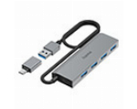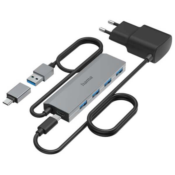 HAMA 200138 HIGH-SPEED 4-PORT USB 3.2 GEN 1 HUB WITH USB-C ADAPTER & POWER SUPPLY UNIT