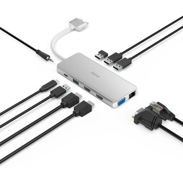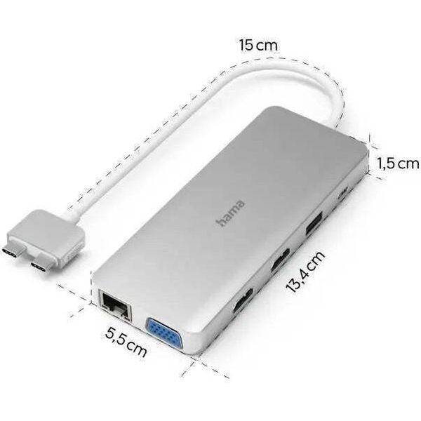 HAMA 200143 CONNECT2MOBILE V2 USB-C 3 X USB-A VGA HDMI ETHERNET HUB MULTIPORT 7 PORTS