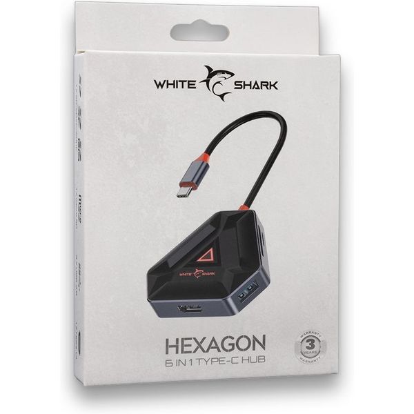 WHITE SHARK 6IN1 TYPE-C HUB BLACK/SILVER HEXAGON