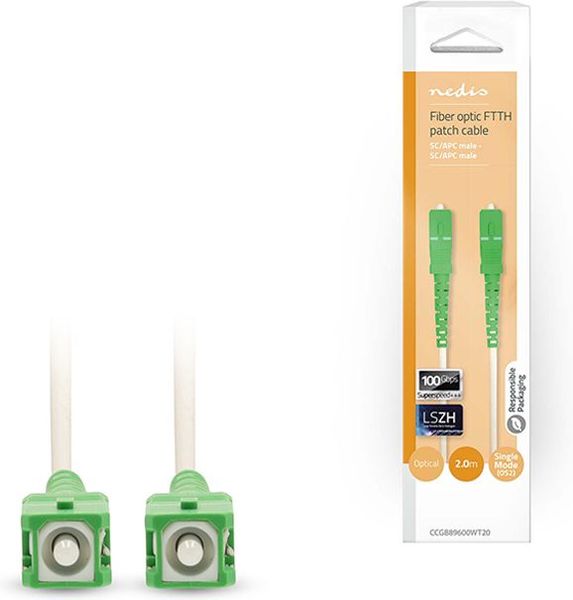 NEDIS CCGB89600WT20 GLASS FIBER PATCH CABLE SMF (SINGLE MODE PHASE) SC/APC - SC/APC 2.00M WHITE