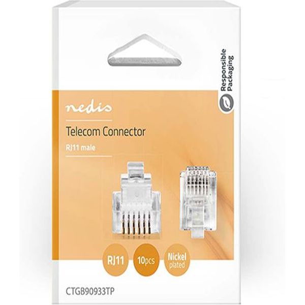 NEDIS CTGB90933TP TELECOM CONNECTOR RJ11 GOLD PLATED TRANSPARENT