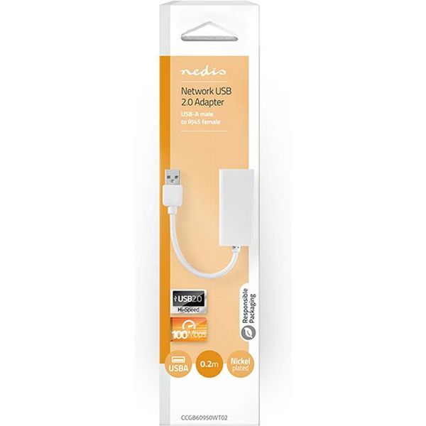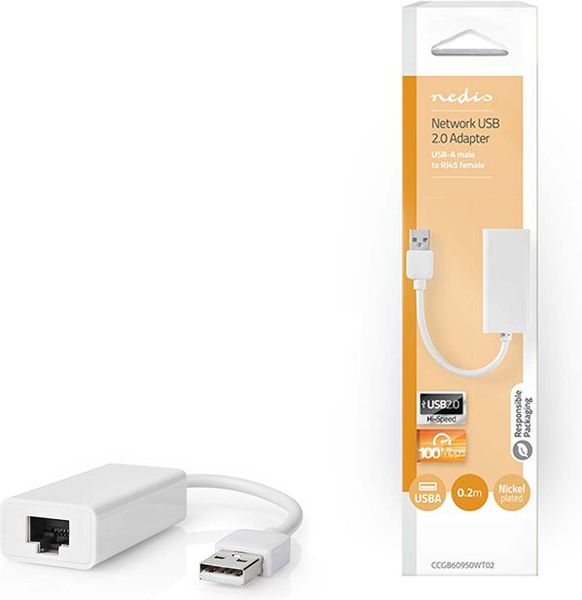 NEDIS CCGB60950WT02 USB 2.0 NETWORK ADAPTER USB-A MALE - RJ45 FEMALE 0.20M WHITE