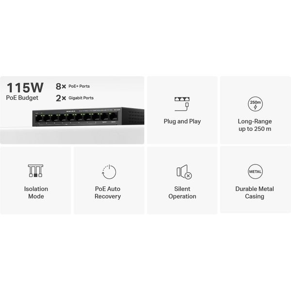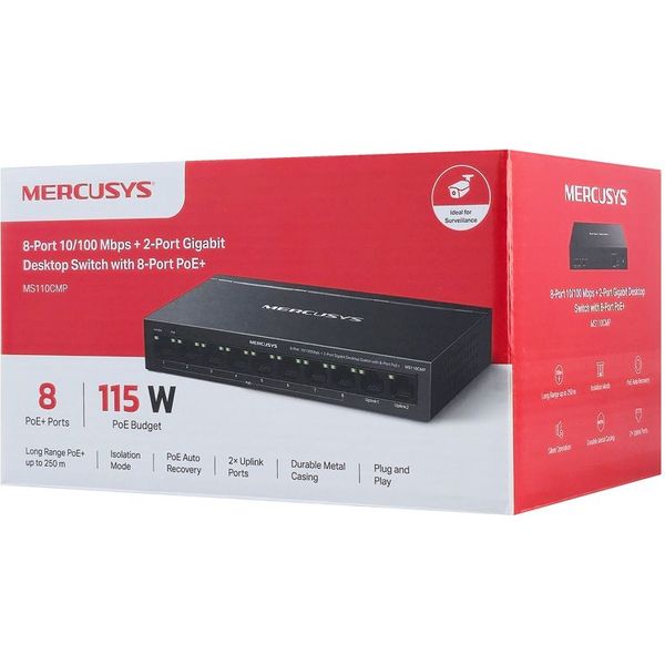 MERCUSYS MS110CMP 8-PORT 10/100 MBPS+2-PORT GIGABIT DESKTOP SWITCH WITH 8-PORT POE+