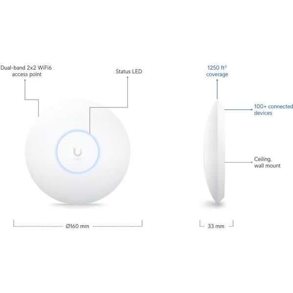 UBIQUITI ACCESS-POINT UNIFI U6-PLUS (U6+) 802.11AX (OHNE POE-ADAPTER) WITHOUT POE ADAPTER