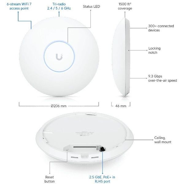 UBIQUITI ACCESS-POINT UNIFI U7-PRO 802.11BE WIFI 7 (OHNE POE-ADAPTER) WITHOUT POE ADAPTER